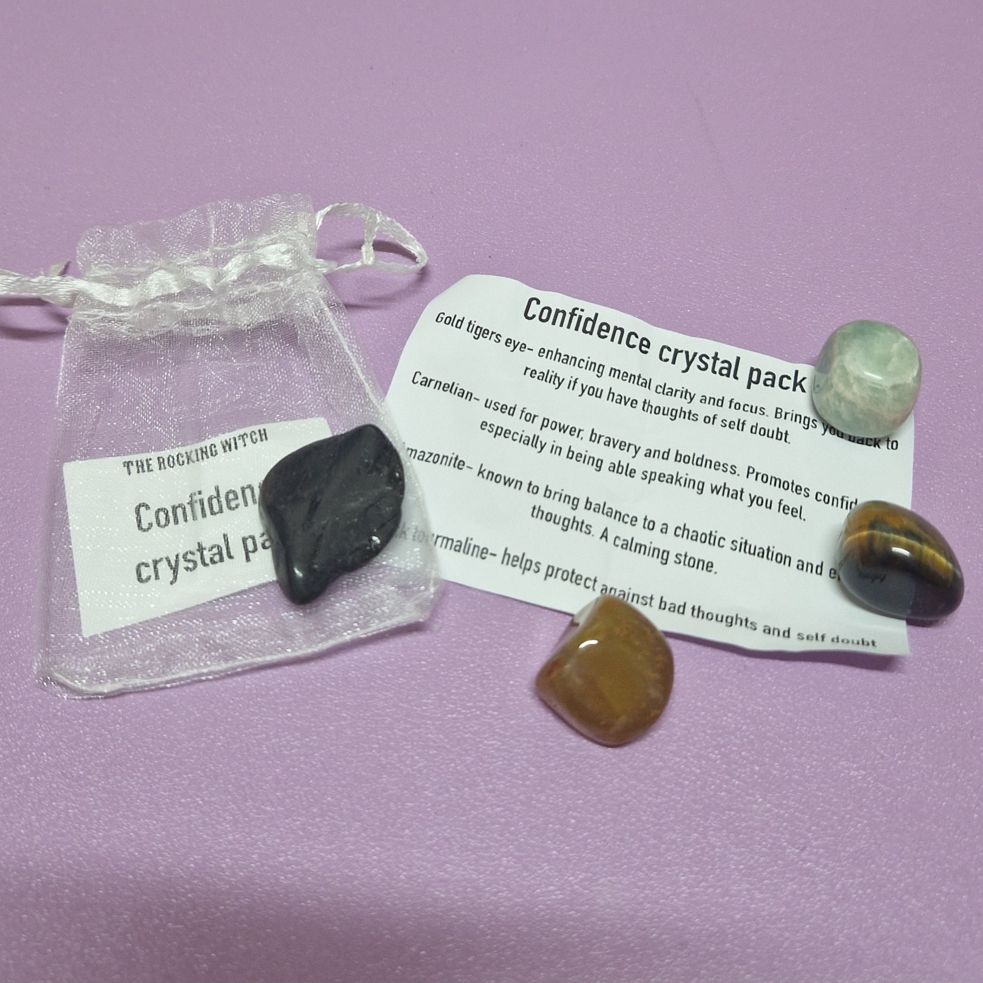 Confidence crystal pack to help bring out that inner confidence. This crystal pack includes 4 crystals and a information sheet. The pack comes packaged in a white organza bag which is perfect to carry around.
