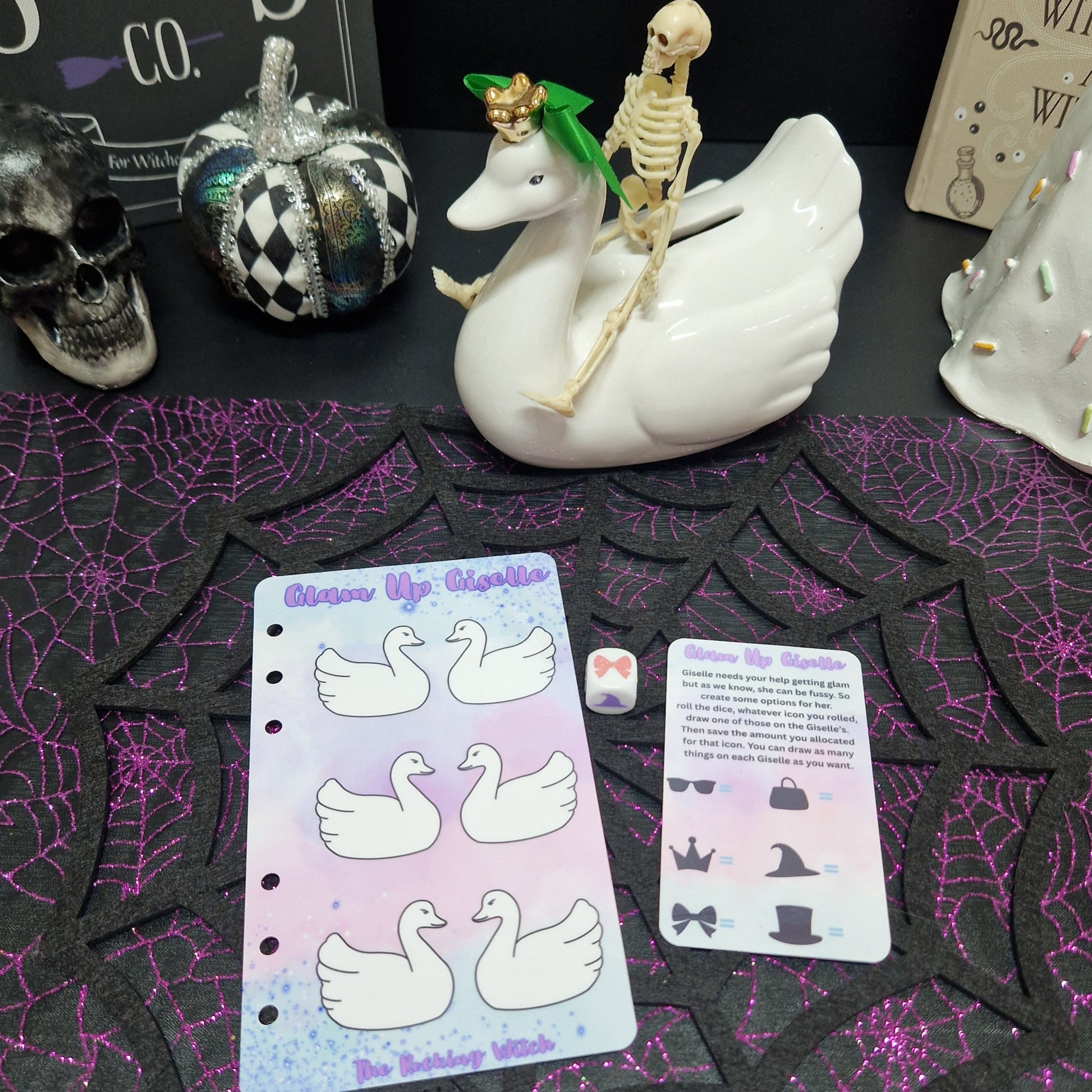 - Giselle needs your help getting glam but as we know, she can be fussy. So create some options for her. Roll the dice , whatever icon you rolled, draw one of those in the Giselles. Then save the amount you allocated for that icon. You can draw as many things on each Giselle as you want.